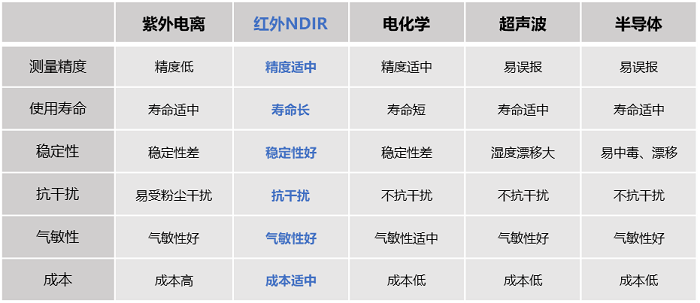 要保障電力行業(yè)室內(nèi)氣體的安全,首先要確定有效的氣體檢測方法以便對(duì)現(xiàn)場所泄漏SF6氣體濃度進(jìn)行有效且精確的監(jiān)測。目前市場上的主流檢測方法有紫外電離法、紅外NDIR法、電化學(xué)法、超聲波法和半導(dǎo)體法等。
