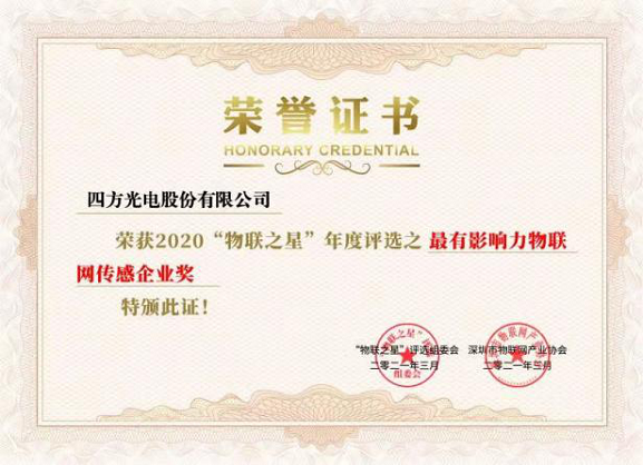 4月20日,2021中國物聯(lián)網(wǎng)CEO大會暨“物聯(lián)之星”頒獎盛典在上海隆重舉行。四方光電股份有限公司(股票代碼688665)在超過500家物聯(lián)網(wǎng)參評企業(yè)中脫穎而出,最終攬獲2020 “最有影響力物聯(lián)網(wǎng)傳感企業(yè)獎”、“最佳智慧醫(yī)療應用方案獎” 和“最具人氣企業(yè)獎”三大獎項,得到業(yè)界充分肯定。